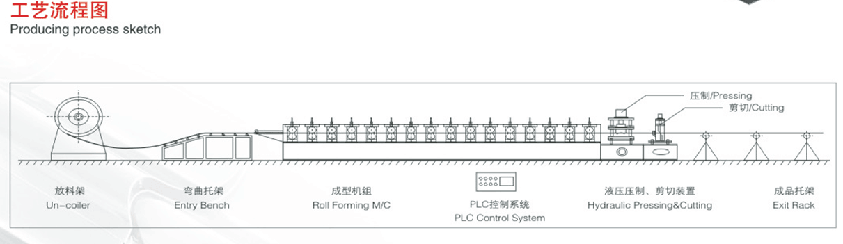 9、機(jī)組包括:成型主機(jī)、液壓站、放料架、成型剪、控制箱、出料架。