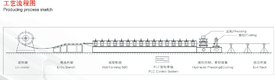 彩鋼琉璃瓦設(shè)備主要由放料機(jī)、進(jìn)料導(dǎo)入平臺(tái)、成型主機(jī)、沖模壓型裝置、成型剪切裝置、液壓站、電腦控制系統(tǒng)、成品托架等幾部分組成。