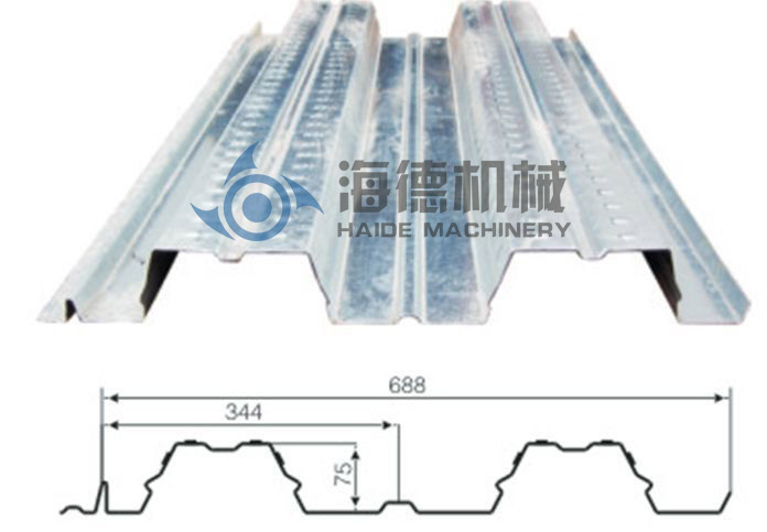 該機(jī)生產(chǎn)的鋼樓承板形狀簡(jiǎn)潔、波度大、強(qiáng)度高、安裝時(shí)鋪置點(diǎn)焊鋼筋網(wǎng)后與混凝土現(xiàn)場(chǎng)澆灌結(jié)合,粘合性好。在高層建筑上既可以省去鋼模板又可以減輕樓層承載,在達(dá)到同等承受能力的前提下,使工程用鋼量減少,從節(jié)省投資。